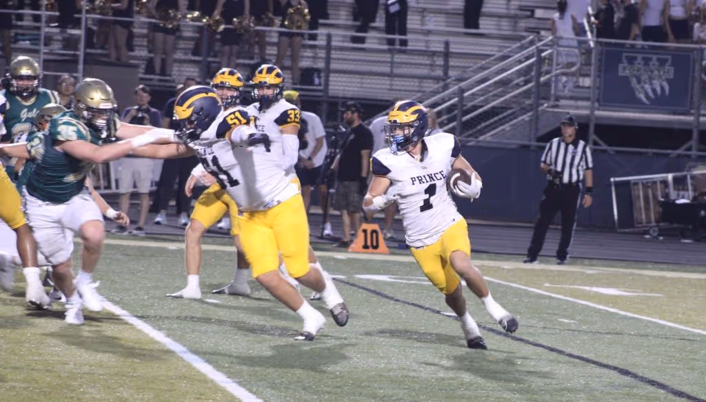 Andrew Beard put Prince up 6-0 on a short run but the ensuing extra-point attempt missed the mark. West Forsyth got on the board with a 32-yard field goal from Asher Mote with 3:58 left in the first quarter.